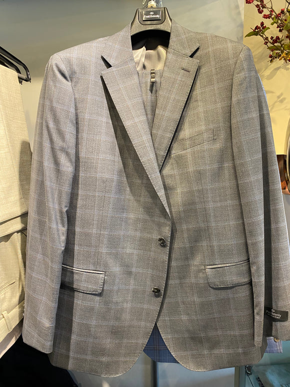 David Donahue White & Blue Neat Diamond Print Dress Shirt