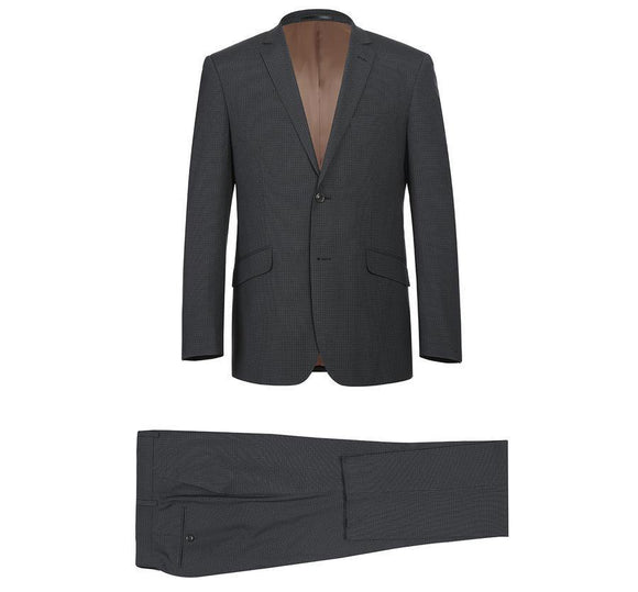 Renoir 508-3 Men's Dark Grey 2-Piece Notch Lapel Wool Suit