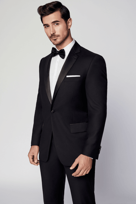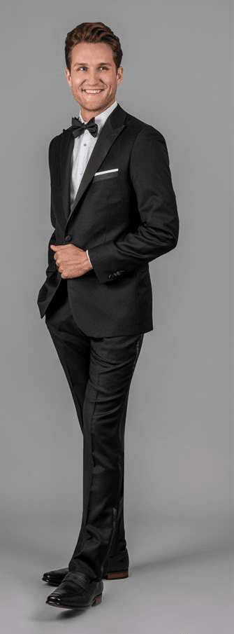 Renoir 201-1 Men's Black Tuxedo Peak Lapel Dress Suit