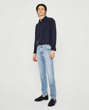 The Everett modern slim straight jean for men comes in a light blue wash with a 12-year vintage fade. Featuring a fitted upper block and tapered leg opening, this five-pocket men's jean is crafted from 10 oz. Daytripper Stretch Denim for a luxurious feel and premium look.