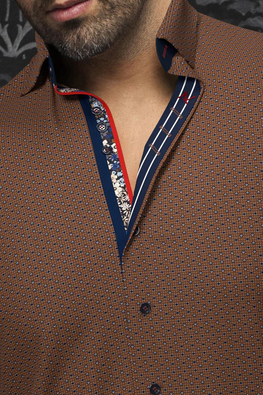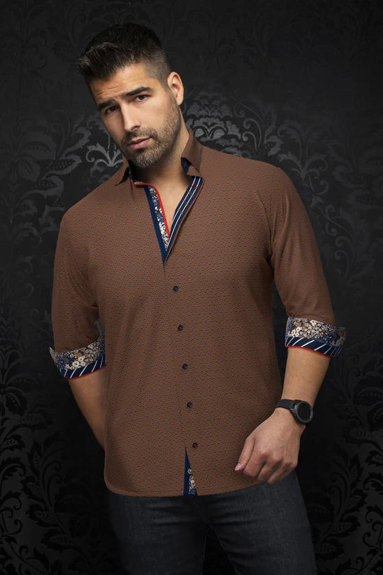 This is a collection of comfortable, performance stretch, fashionable dressy and casual shirts. Stand out from the crowd, thanks to Au Noirs cleaver use of contrasting patterns and sophisticated details. Comfortable with a high quality, performance stretch cotton fabric.