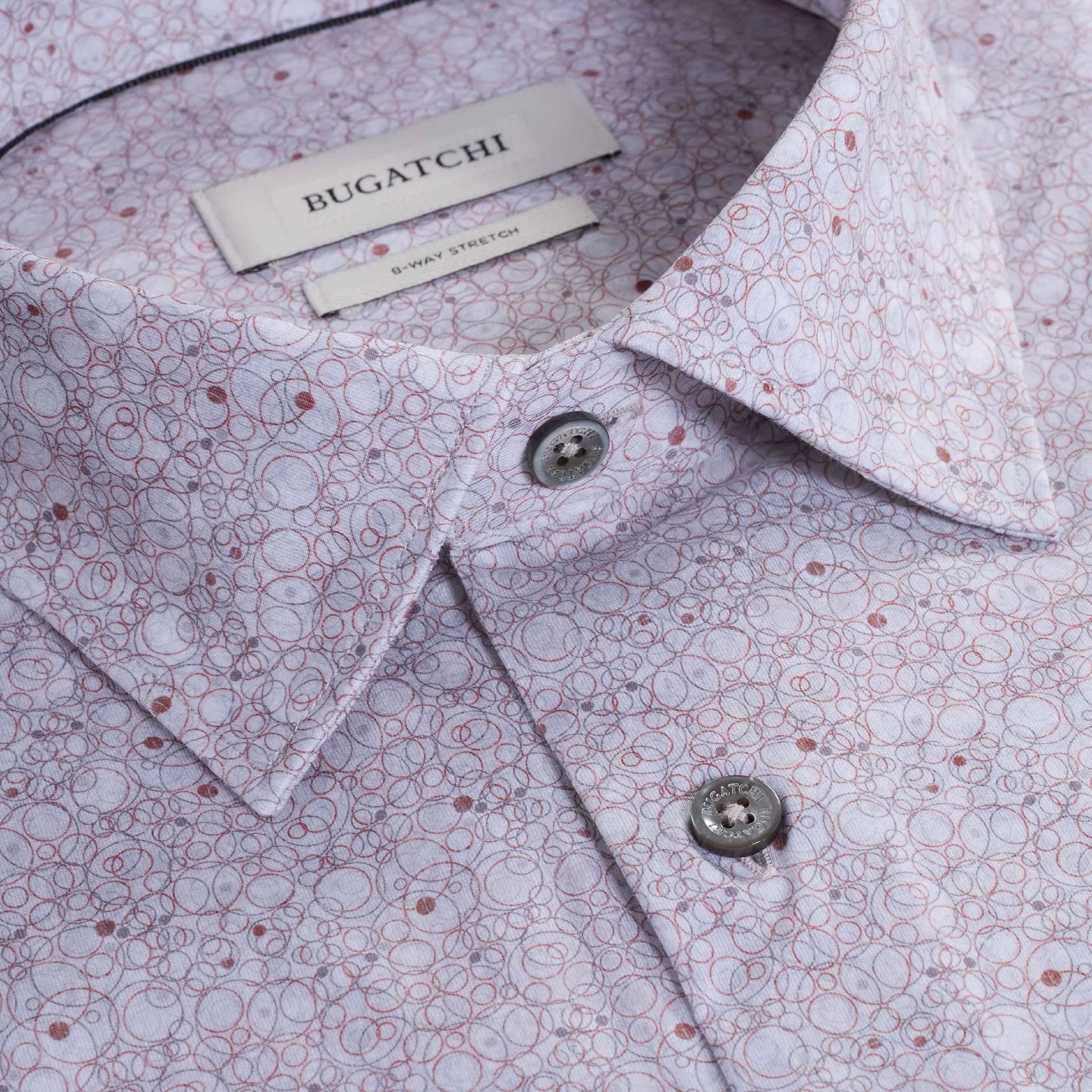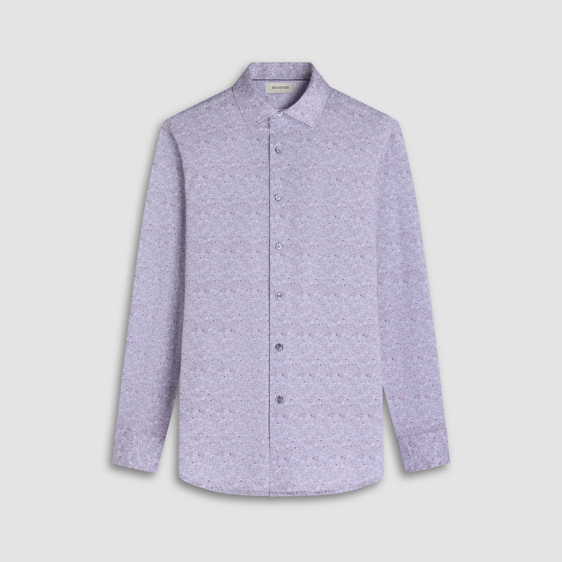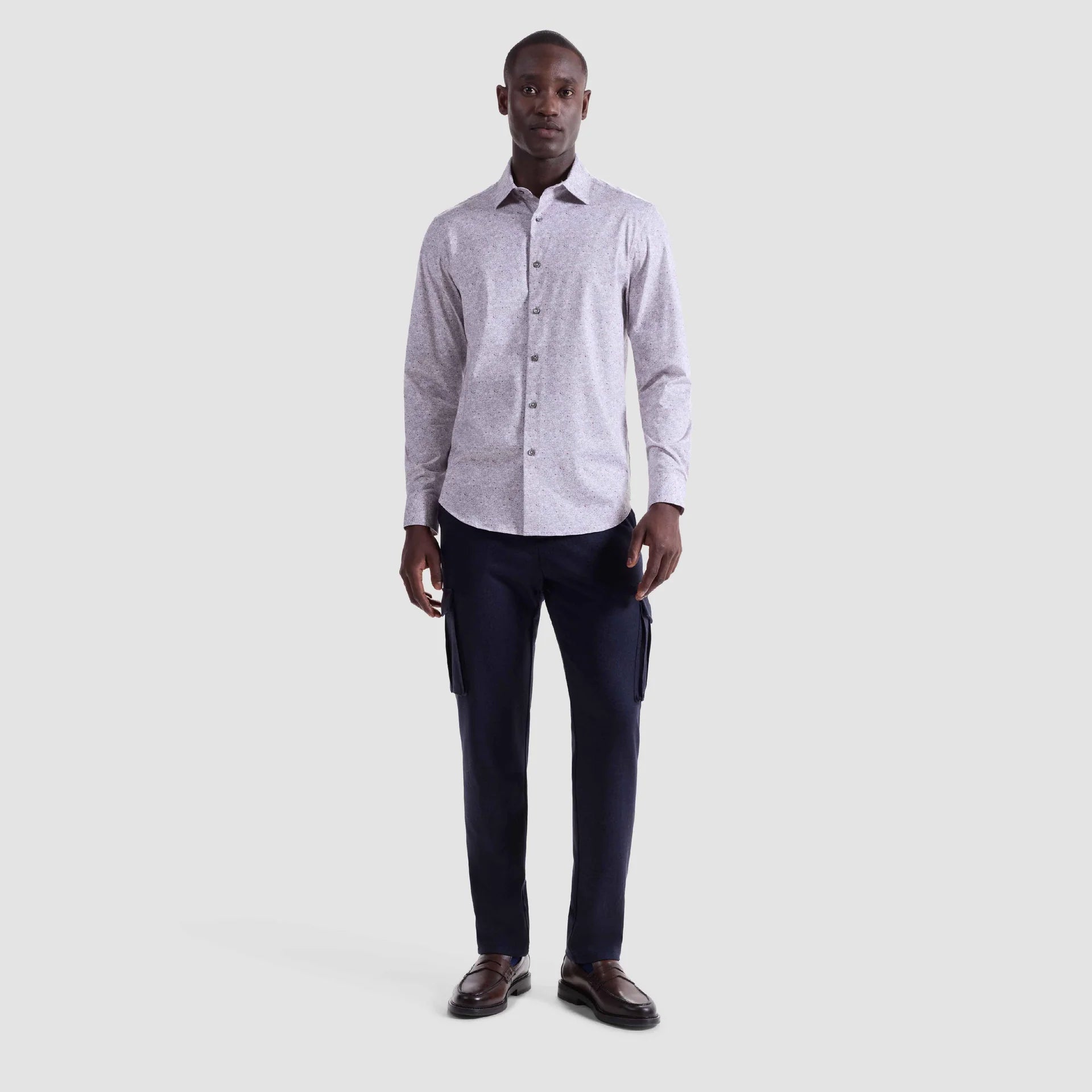 The James OoohCotton® long-sleeved shirt in geometric print features a point collar, mother-of-pearl buttons, and a curved hem for a sleek tucked or untucked look. The notched cuffs are adjustable to allow for customized fit and also convertible to accommodate cufflinks. OoohCotton® is a performance, double-mercerized, wrinkle-resistant, breathable, and easy-care cotton blend with 8-way stretch, quick-dry, and thermal comfort properties.