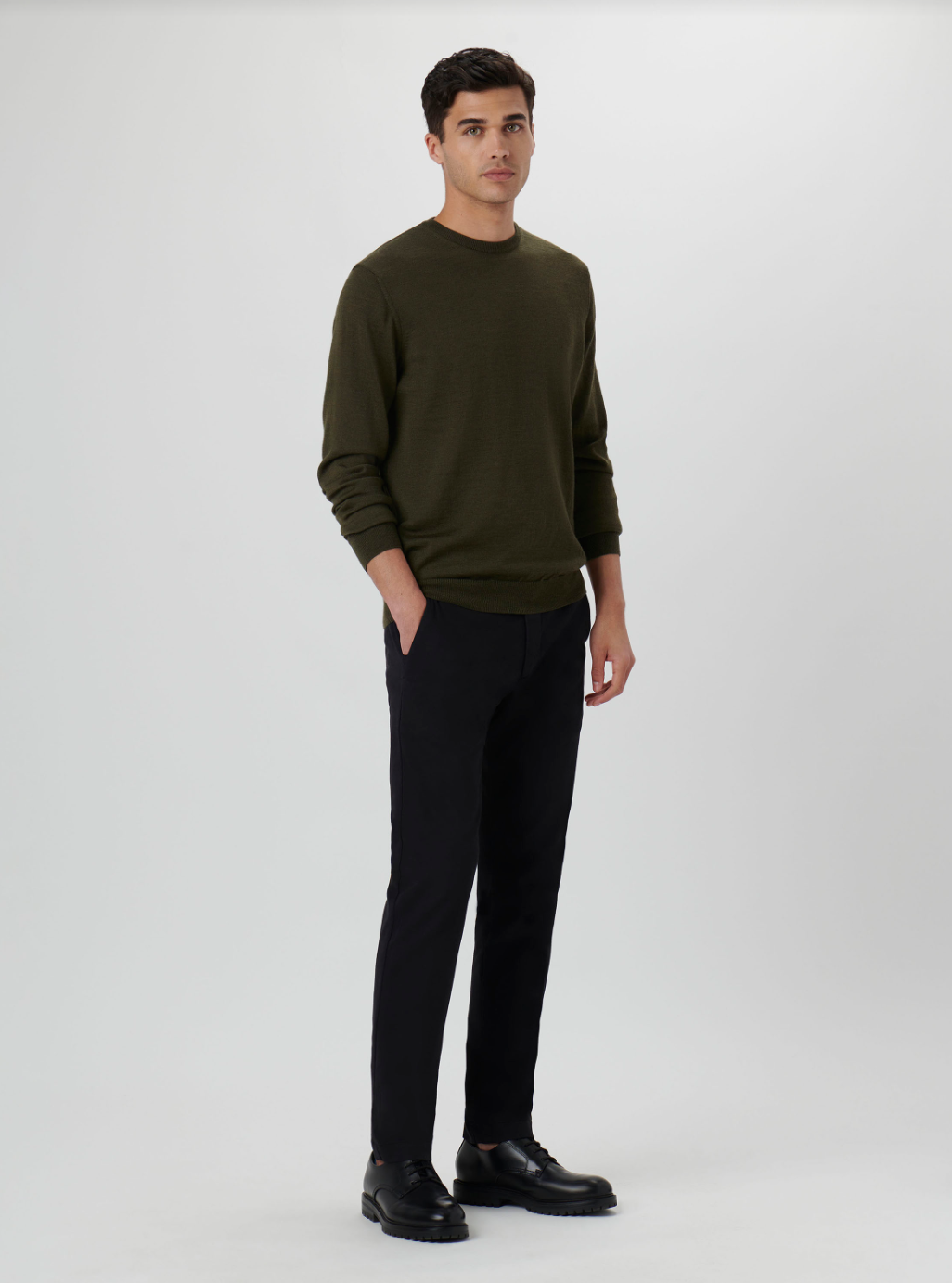 The Scott crew neck sweater in 100% extra-fine Merino wool with Harmony 4.0 special finish is made in Italy and features a ribbed neckline, sleeve cuffs and waistband. This sweater is made with a high-twist yarn that's breathable, moisture-wicking, water repellent, machine-washable, and crease-proof for long lasting performance wash after wash.