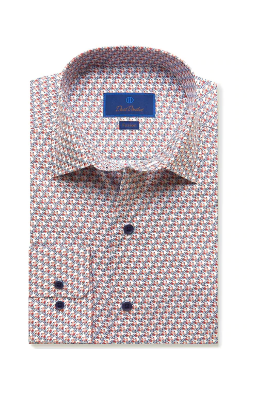 David Donahue Melon & Navy Bike Print Fusion Shirt