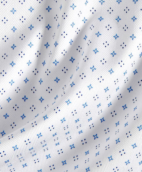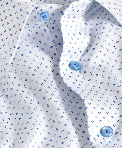 David Donahue White & Blue Neat Diamond Print Dress Shirt