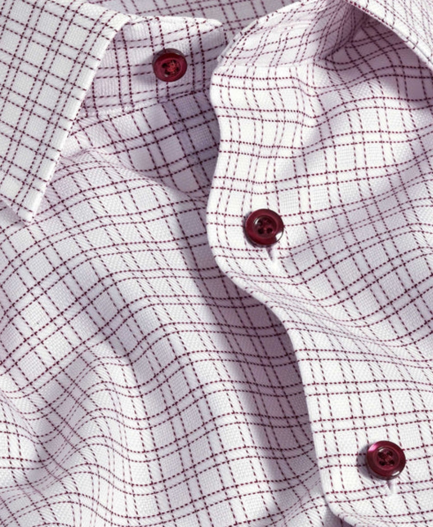 David Donahue White & Merlot Dobby Check Dress Shirt