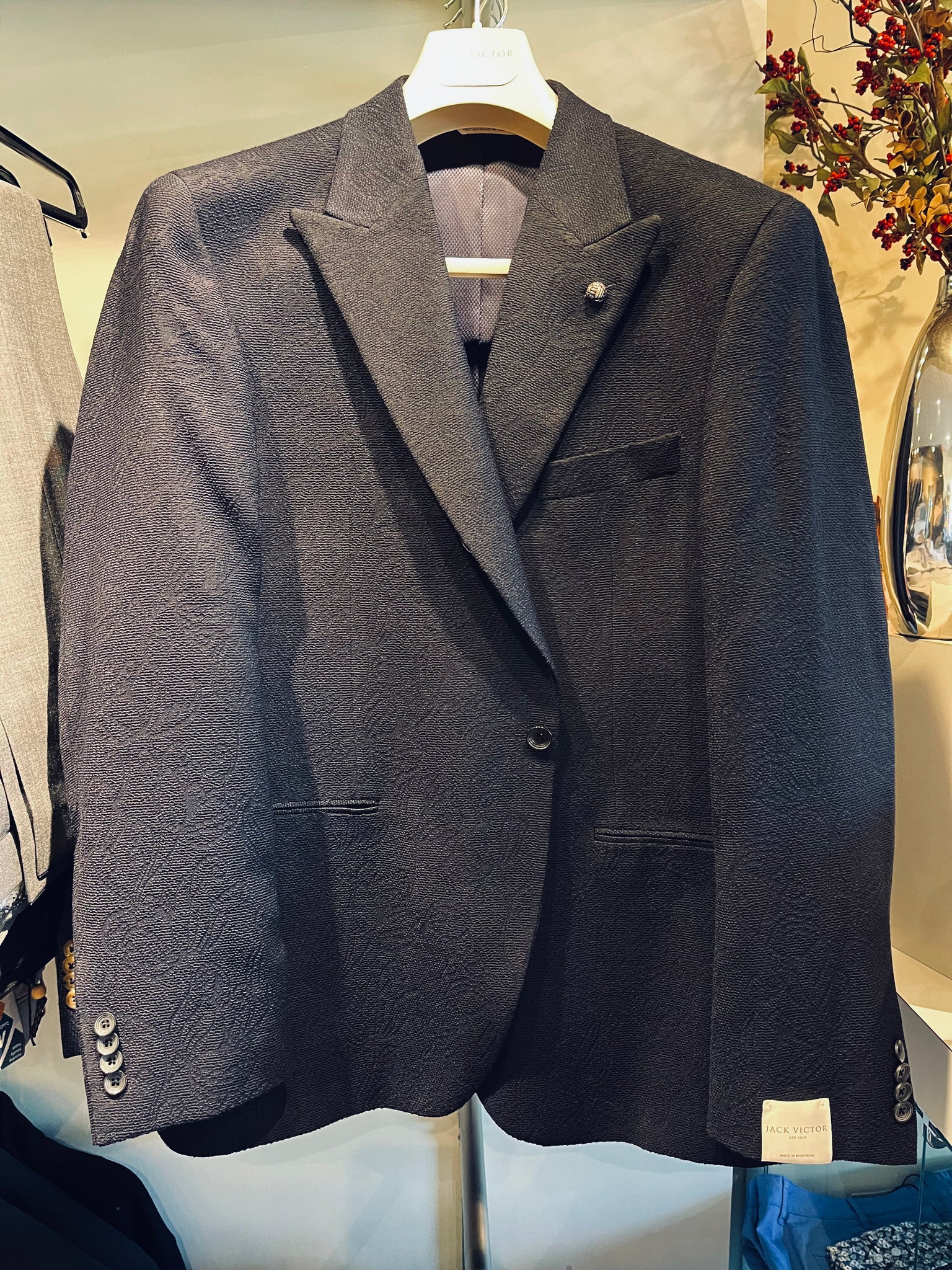 - Lower welt pockets and upper welt breast pocket, with inside pockets