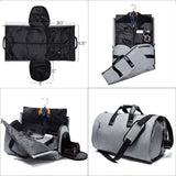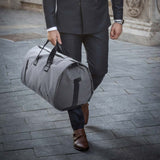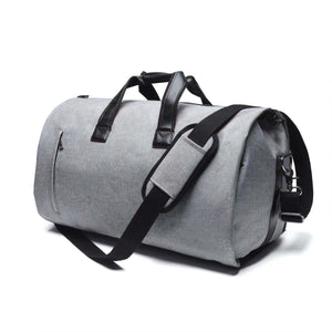 Don't go anywhere without the ultimate 2 in 1 Garment Duffle Convertible! A convertible garment bag that can be converted from a flat garment bag to duffle bag at the same time for easy travel. Exterior zipper pocket, multiple interior zipper pockets, trolley sleeve, anti-skid feet, carry handles, & detachable should strap. Perfect for travelling, weekend getaways, school, & gym. Mad Man, masters of men's gifts. Material: Denier Canvas. Dimensions: 20" x 16" x 12"