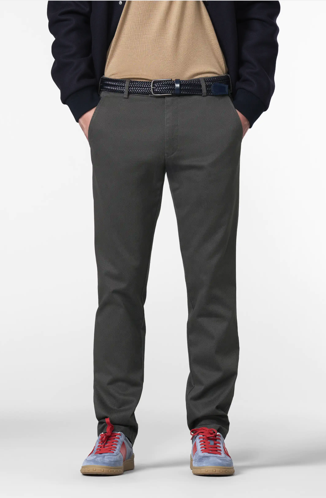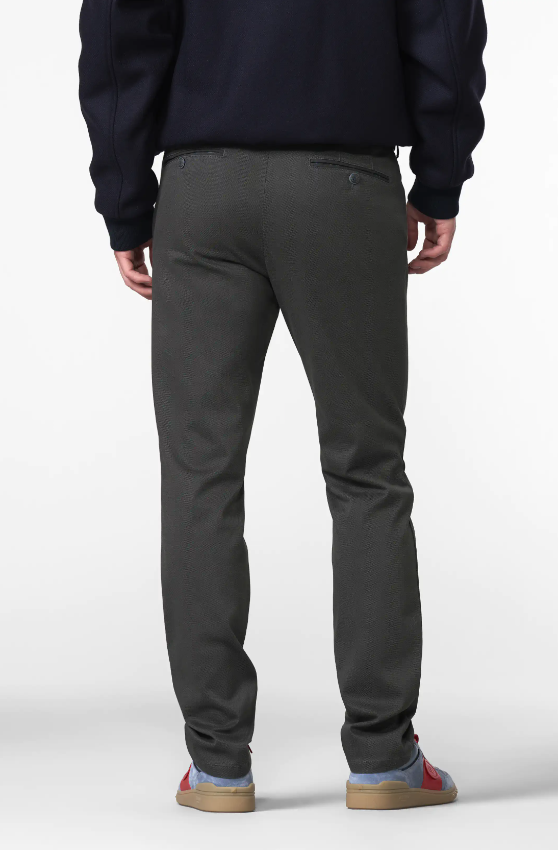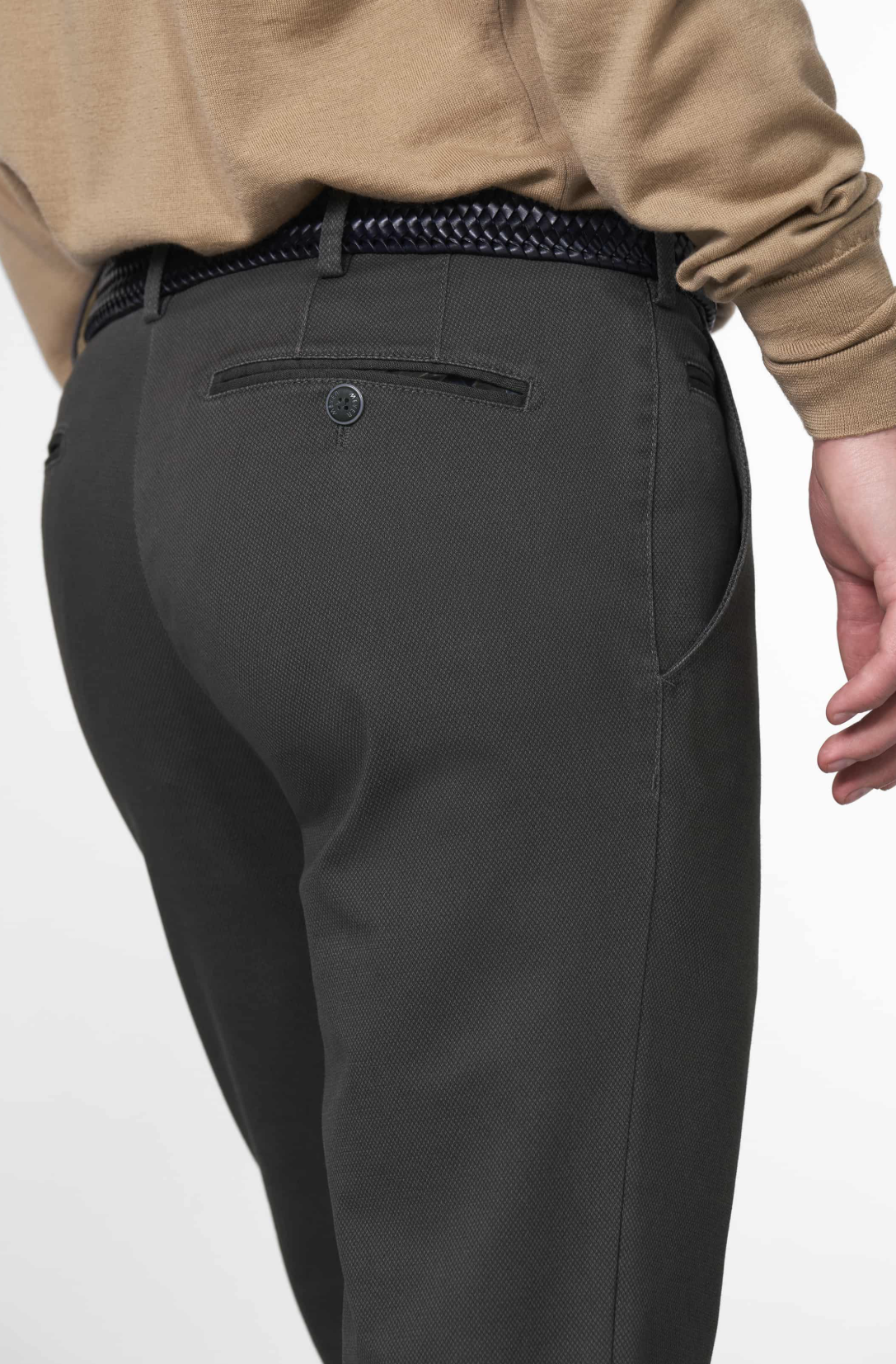 Modern side pockets with an extra coin pocket on the right hand side, 2 hip pockets with special stitching and button, bottom: 38 cm/15 in.