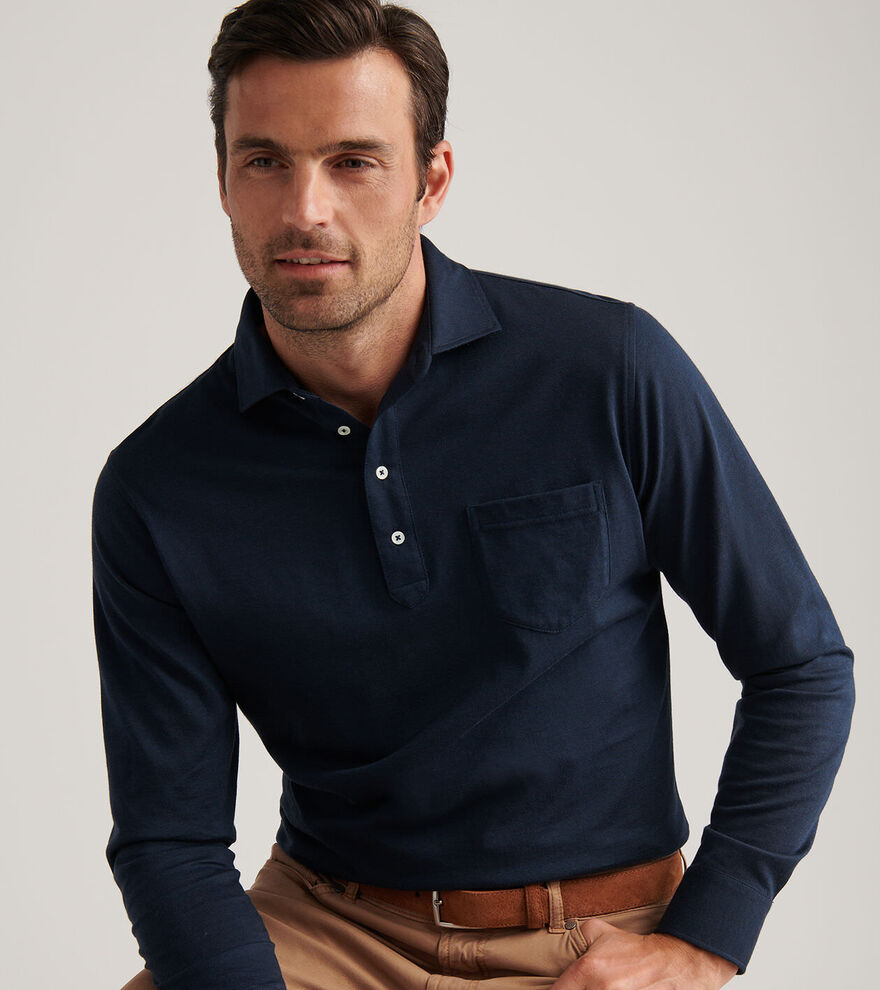 - Men's 92% cotton / 8% cashmere long-sleeve polo