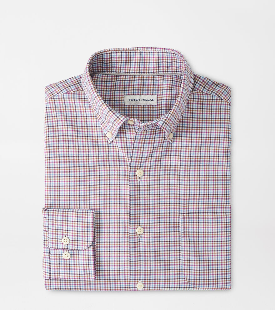 This sport shirt is made from a breathable blend of cotton and performance yarns for stretch and softness. It’s finished with a button-down collar, French placket and double-button barrel cuffs.