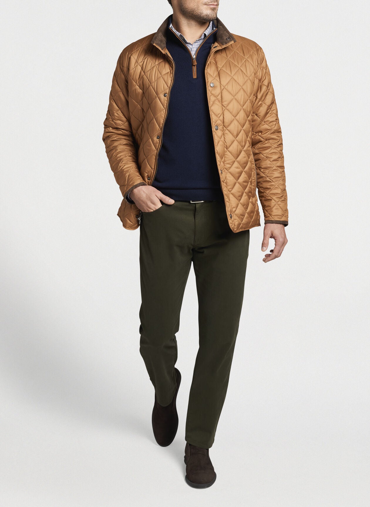 An iconic Peter Millar style, the Suffolk Quilted Travel Coat is the perfect answer to blustery weather. Lightweight insulation and a fleece-lined interior provide optimal warmth, making this coat an ideal outer layer for chilly fall days. The exterior is crafted from a windproof, water-resistant fabric that provides ample protection from the elements, while the interior features six pockets for ultimate functionality. A quilted design and contrast piping add a dash of heritage style. It’s finished with a stand-up collar, hidden zip-front, snap-button placket and exterior side pockets.